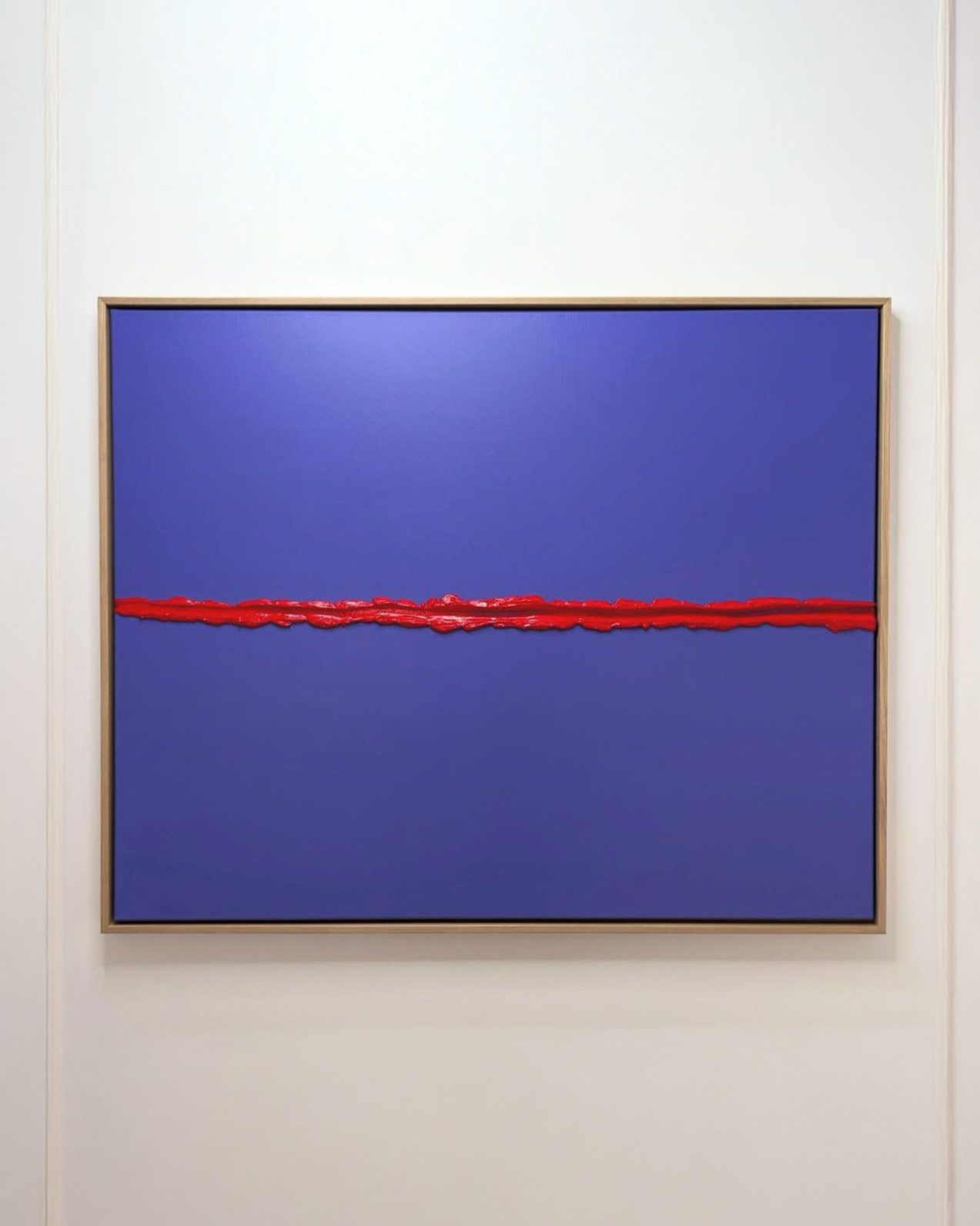 „elements in balance 02“ ist teil einer serie, die aus verschiedenen farbkompositionen besteht. dieses werk zeigt einen fliederfarbenen hintergrund, durchzogen von einer markanten struktur in leuchtendem rot – ein kontrast, der spannung erzeugt und gleichzeitig ruhe ausstrahlt. trotz der kraftvollen farbgebung bleibt das werk in seiner formensprache minimalistisch und abstrakt. die serie steht dafür, dass auch wenn sich das leben manchmal schnelllebig oder überfordernd anfühlt, die balance am ende immer ihren weg zurückfindet.