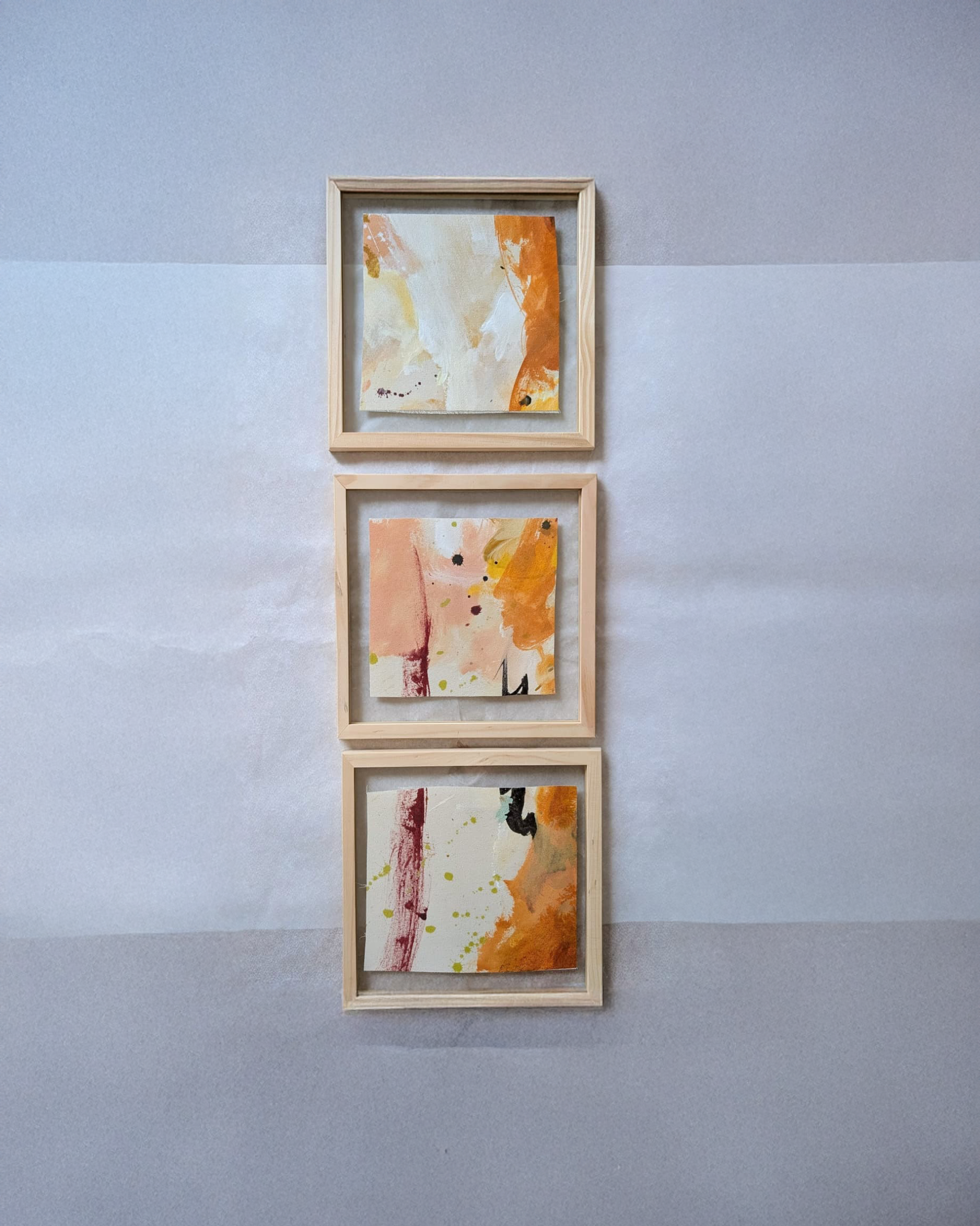 perfekt für deine bildergalerie oder die kleinste wand zuhause. mit einem mini artwork erhältst du einen detailausschnitt eines größeren kunstwerkes, gerahmt in einem doppelglasrahmen. dieser verleiht dem kunstwerk leichtigkeit und besticht durch eine moderne minimalistische linie. durch die rohen unbehandelten kanten wird die struktur und natürlichkeit des baumwollgewebes hervorgehoben.