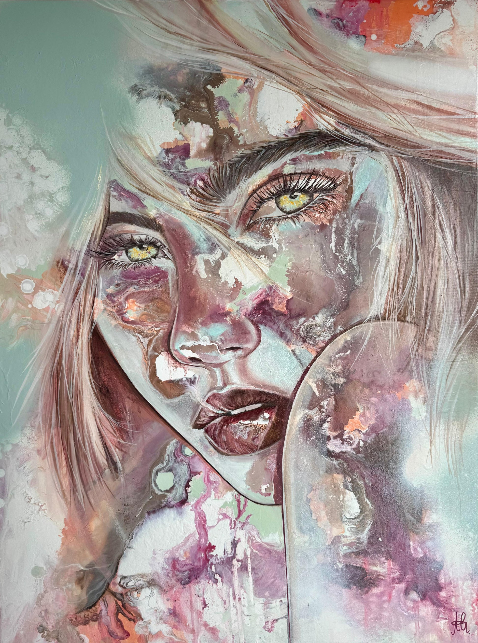 antonia erschafft farbenfrohe porträts, in denen abstraktion auf realismus trifft. die 1999 in hamburg geborene künstlerin lässt sich von der technik des acrylic pouring inspirieren, deren fließende dynamik ihre werke prägt.