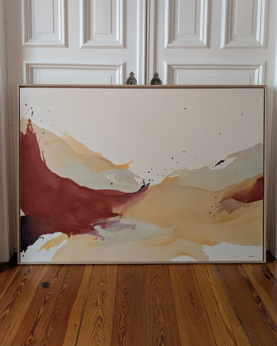 die farben können aufgrund von monitoreinstellungen etwas vom original abweichen. die mockups wurden mittels ki generiert, weshalb veränderungen möglich sind. wir empfehlen, wenn möglich, die abholung bei der künstlerin vor ort.