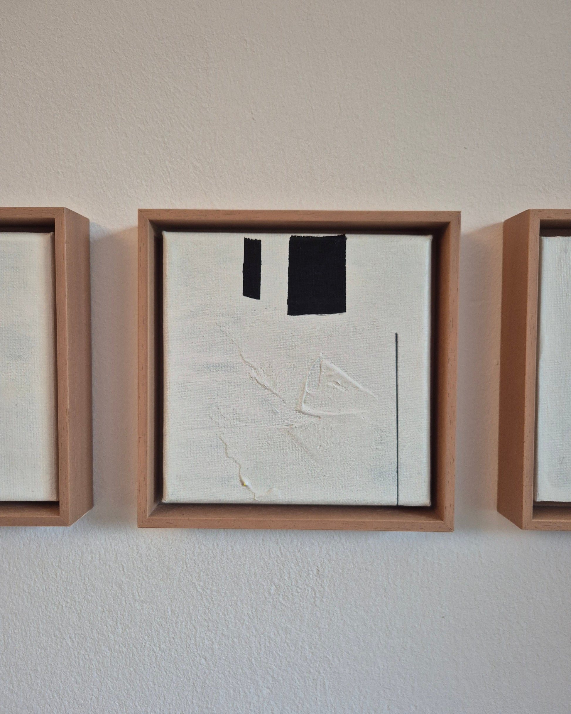 auf großformatigen leinwänden widmet sie sich farben und formen, die (sich) berühren, verbinden und in minimalistischer weise komplexe gefühle widerspiegeln.