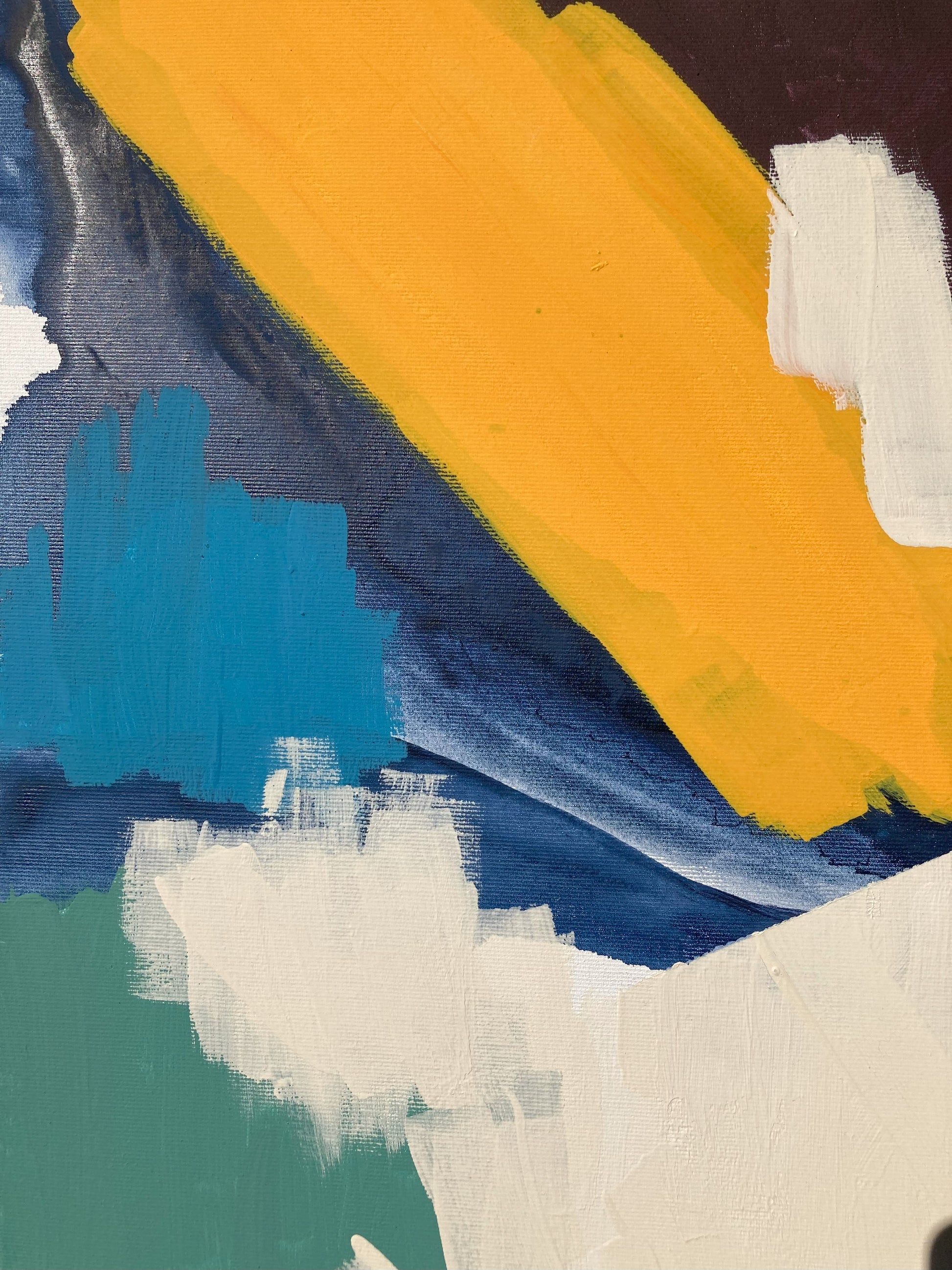 auf großformatigen leinwänden widmet sie sich farben und formen, die (sich) berühren, verbinden und in minimalistischer weise komplexe gefühle widerspiegeln.